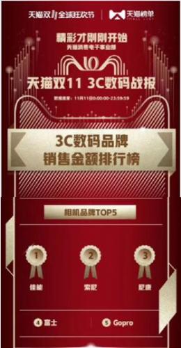 双十一战报:佳能三大平台销量第一!