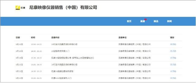 点击“直播”,即可在以下时间段收看尼康品牌在线直播节目