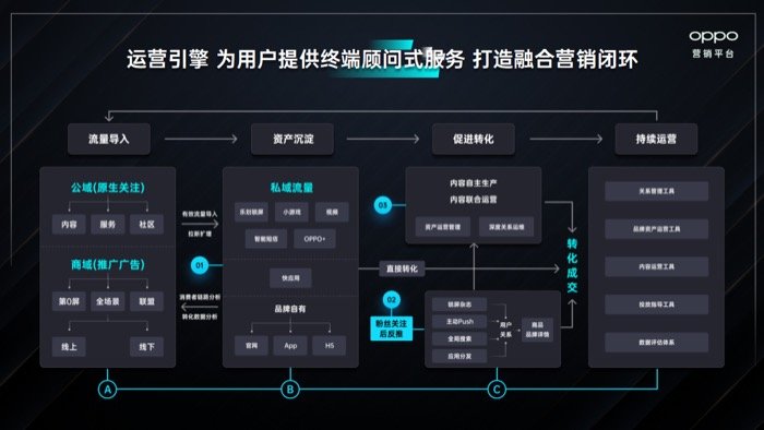 Thoughtful(品牌资产沉淀)则能够让品牌更高频高效地与用户建立关系,通过O企号、乐划锁屏、智能短信和快应用等系统级应用,可以帮助广告主将公域流量转化为私域流量,再通过内容运营最终促成转化,实现与用户的长效沟通和运营。