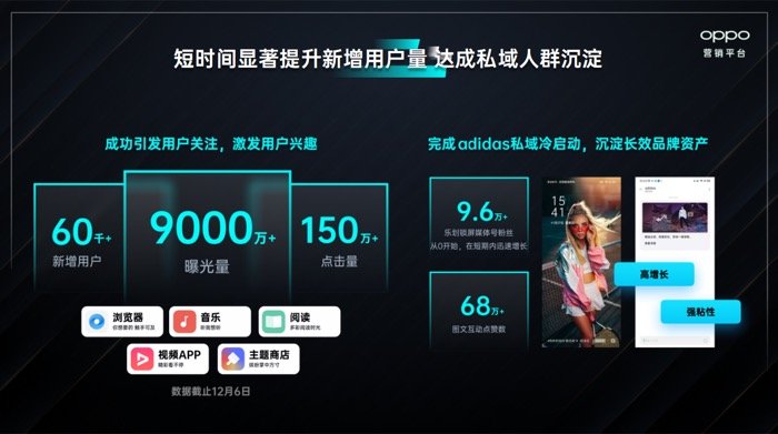 最终,OPPO营销仅用20天时间,助力阿迪达斯收获近10万的粉丝,整体获得6万以上的新增用户。