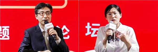 佳能(中国)影像产品信息本部副总经理栗开宇、海信视像科技股份有限公司显示专家赵彩霞发言