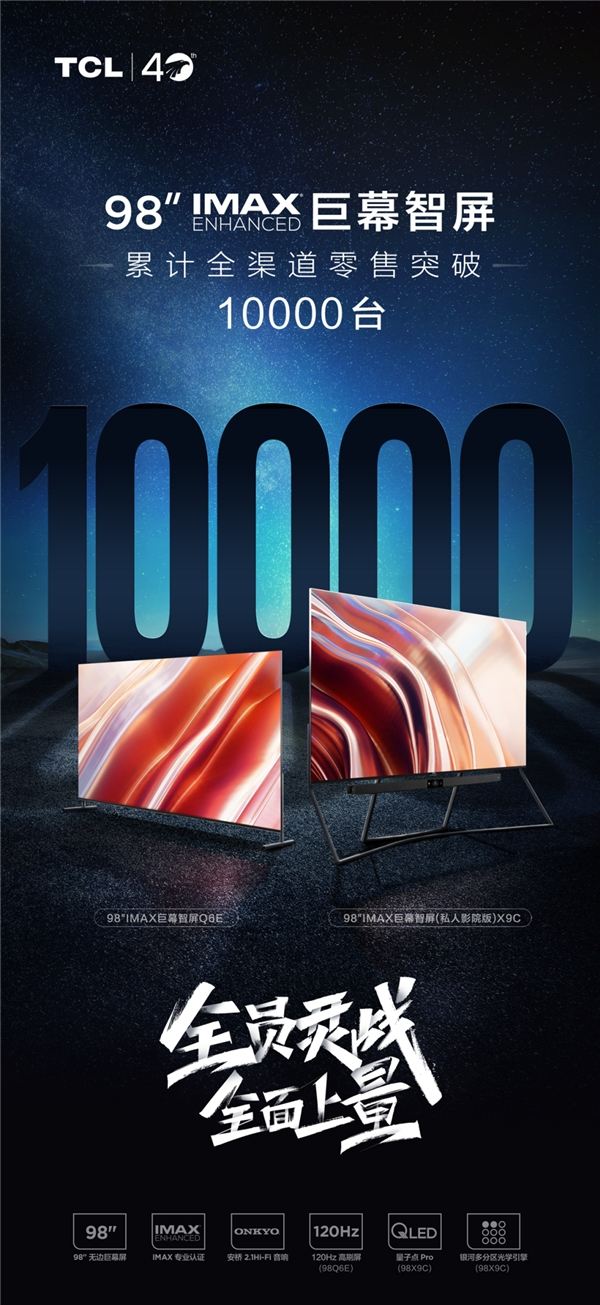 截止目前,TCL在98英寸巨幕智屏这一细分市场中仍处于遥遥领先的位置,且在销量方面,TCL 98英寸巨幕智屏累计全渠道零售已突破10000大关。