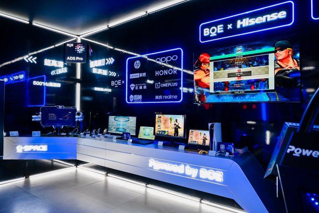 “屏科技Lab”展区内,BOE(京东方)将液晶屏幕生产的四大核心技术工序一一拆解,向大众完整揭秘“一块显示屏的前世今生”,还全面展示了BOE(京东方)三大显示技术品牌——ADS Pro、f-OLED、α-MLED的顶尖技术实力。ADS Pro展区内,一块斩获德国红点奖的110英寸超大尺寸8K超高清大屏令现场观众频频惊叹,纤毫毕现的超高清显示效果带来极致震撼的视觉冲击;观众还通过普通60Hz刷新率与360Hz高刷新率显示器的画面对比,顷刻之间就感受到高刷技术带来的丝滑畅快观感;与此同时,BOE(京东方)还携手联想、海信、雷神、机械师、惠普、OPPO等一众国内外一线品牌厂商特别打造了电竞体验专区,由BOE(京东方)赋能的多款高端手机、电竞笔记本、专业显示器等专业电竞产品集中亮相,为电竞爱好者带来全方位的沉浸式电竞体验。