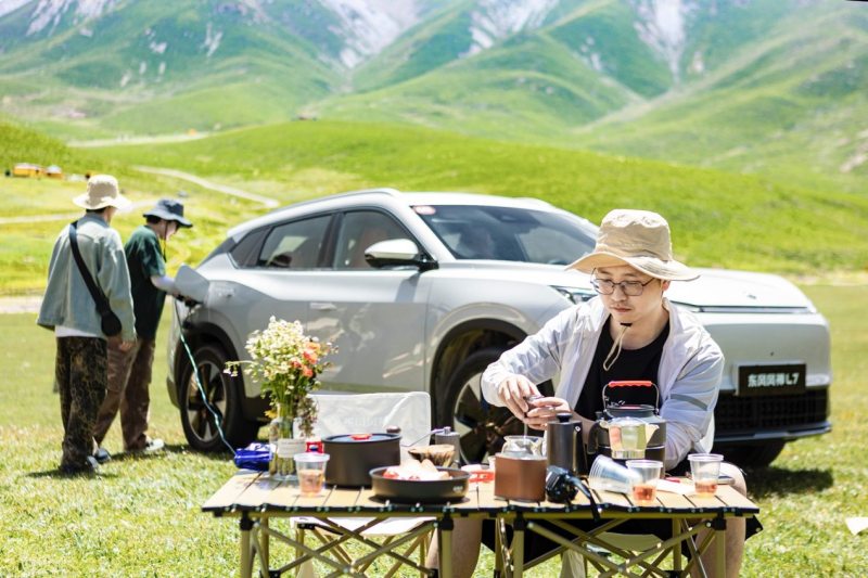 雪山营地露营,野外用火肯定不安全,那就得用电,吃喝玩乐所需的电器设备都需要用电,这无疑给出行带来了不小的挑战。然而有了东风风神L7的3.3kW外放电,这些问题全都迎刃而解,无论是烧水壶、电磁炉、电烤架还是投影仪等电器,都能轻松支持并同时工作,且可持续放电长达7小时以上。这意味着,在任何露营场景下东风风神L7都可以确保用户尽情煮茶、烹饪、嗨玩,让露营只有愉悦没有负担,将茶室、餐厅全都搬到旷野。