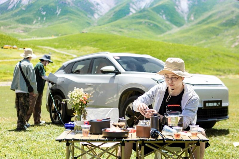 除了快速补能,东风风神 L7 还可以轻松供电。其搭载的 3.3kW 对外放电完全做到了同时为 800 瓦的水壶、1500瓦的电烤盘、800瓦户外投影等设备供电,并可持续7小时以上,真正实现了全家露营“用电自由”,让户外生活和在家里一样舒适。