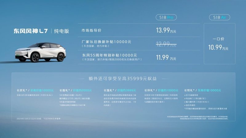10.99万元起 东风风神L7 EV上市 黑科技扎堆上线