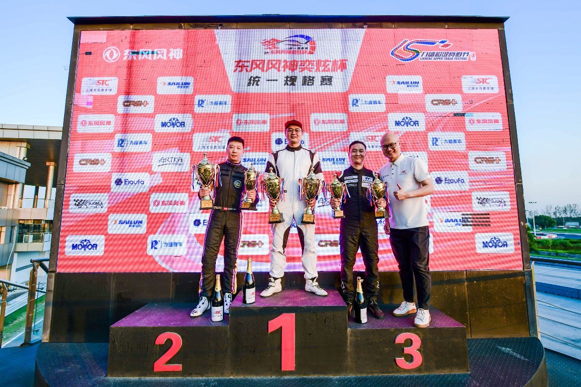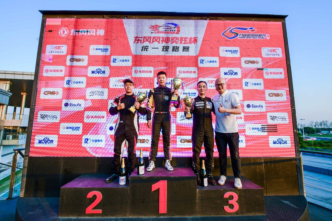 经过两个回合的角逐,此次比赛,最终车手张正乔元、卢亦晟、刘祠在第一回合中脱颖而出,分别夺得冠、亚、季军;而在第二回合中,赵金洲、张正乔元、刘祠则凭借出色的表现,分别揽获了冠、亚、季军;车手赵金洲在本站中以1:23.232的最快圈速成绩,获得“速度之星”荣耀。车手们在赛道上的每一次加速、每一个过弯都令人惊叹,充分展示了东风风神奕炫赛车的卓越性能和车手们的专业水平。