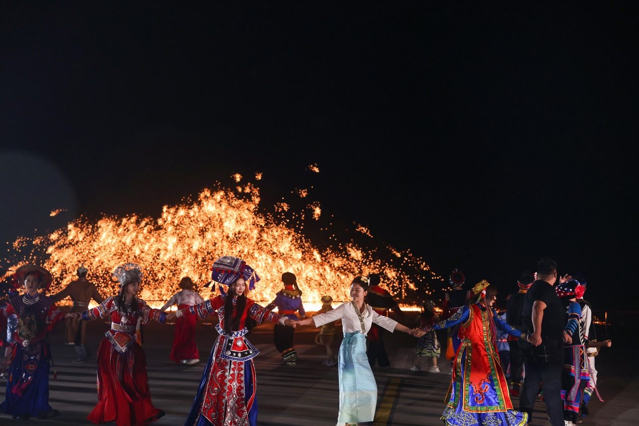 国庆来临之际,小朋友们还在东风风神圆梦团、东风风神车主及7个大家庭的陪伴下,一起为祖国妈妈庆生。夜幕降临,多台东风风神L7摆开五角星车阵,星星灯和车灯亮起,五角星便熠熠生辉;充满民族特色的打铁花也接连迸发光彩,仿佛是为祖国妈妈庆生的烟火;大家穿着民族服装围成一团转起圈来,并齐声高喊:“祝伟大的妈妈生日快乐,永远繁荣昌盛”,场面温暖充满力量,光影与笑声交织成一幅美好的画面,共同献礼祖国妈妈75周岁华诞。