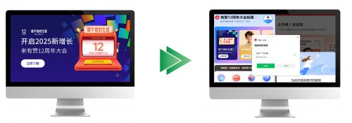 用户在PC端点击广告可直接进入有赞小程序的预设页面参加活动。目前小程序调起率达80%以上,并有网站链接兜底,用户无需多端、多步骤操作,点击一次就能完成报名,双端无缝连接,降低参与门槛,极大缩短用户决策链路,并为后续优化营销策略提供了数据支撑。