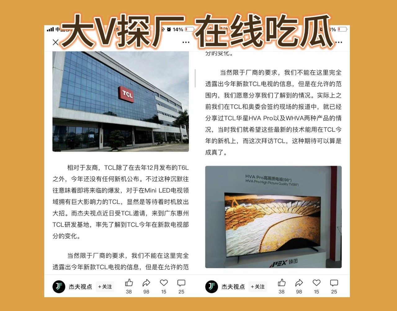 近日,TCL邀请多位行业大V深入探访惠州研发基地,提前揭秘TCL今年新品的核心技术思路。从去年开始,屏幕面板素质逐渐成为行业新品竞争的重要焦点。从此次探厂信息来看,TCL今年的新品不再局限于传统HVA面板,而是大幅普及自家的WHVA面板,并且覆盖范围远超外界预期,从高端到中高端都将陆续搭载。