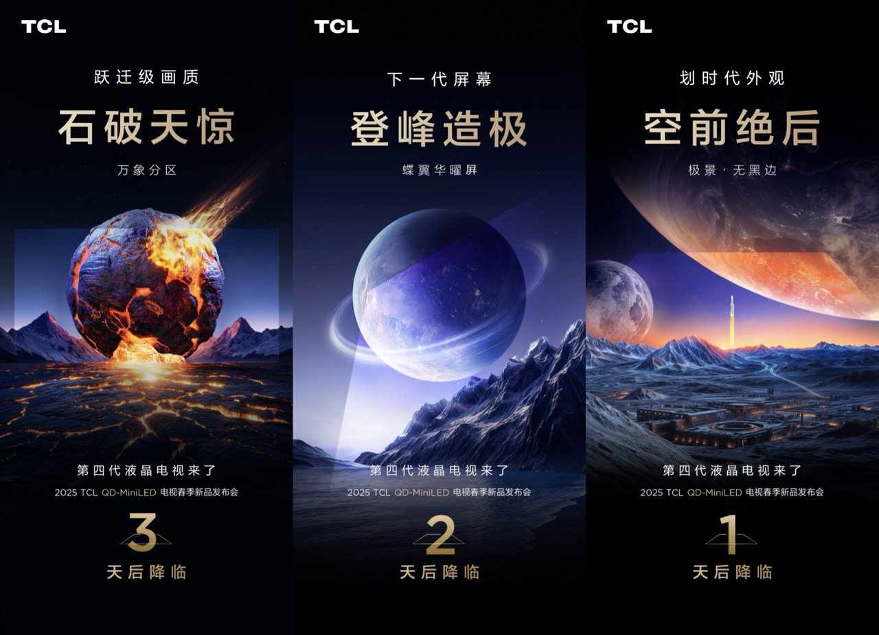除了芯片与AI的融合这一看点外,从TCL官方的春季发布会倒计时海报还释出了三个核心卖点——万象分区、蝶翼华曜屏、极景·无黑边。先说万象分区这个技术,去年年底的TCL新技术发布会首次亮相后,一直都是业内讨论的热点,因为它能实现全链路的精准控光,控光精度比普通电视高出数倍,达到“一区顶多区”的惊人效果!