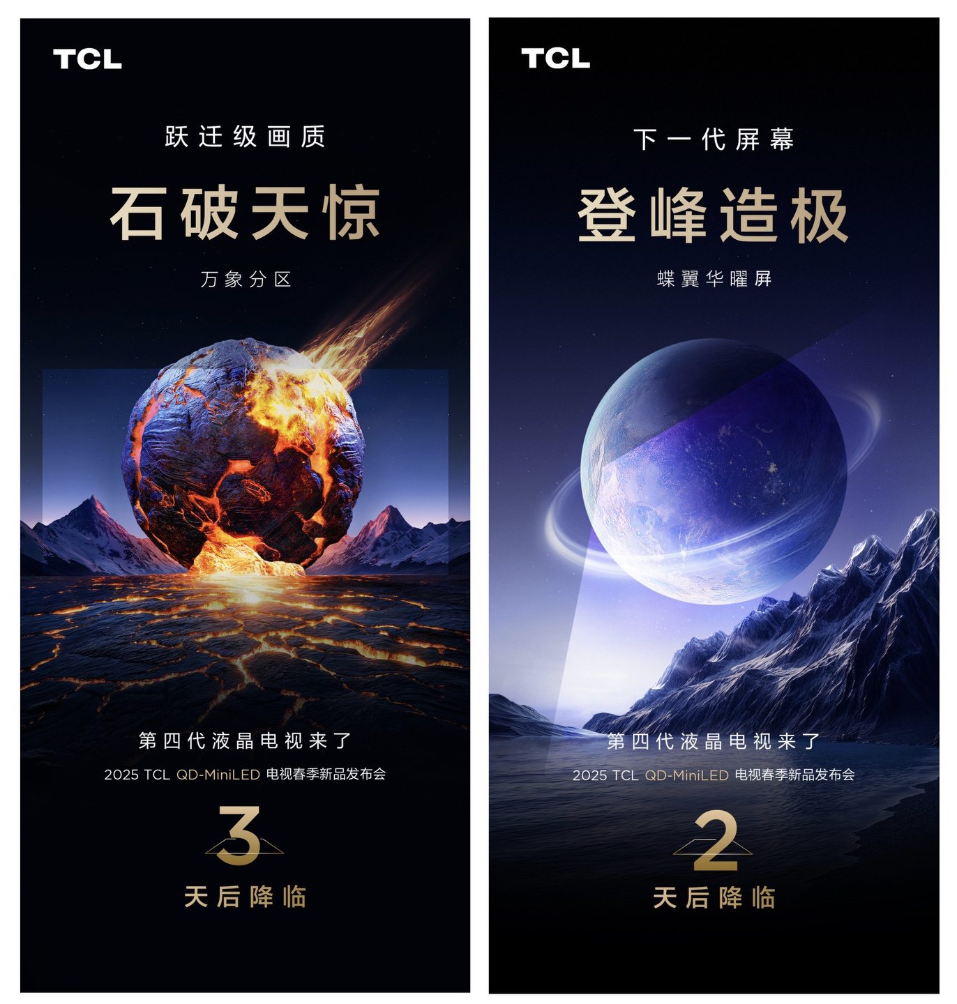 TCL作为全球领先的智能显示企业,掌握着从面板到整机的完整产业链优势,为技术研发与产品创新构筑了坚实的基础。多年以来,TCL深耕Mini LED、QD-Mini LED等前沿显示技术,不断加大投入,已成功构建起稳健且强劲的技术输出体系。无论是万象分区技术的新突破、WHVA技术的首发落地,还是令人瞩目的划时代外观设计,无一不彰显出TCL在此次春季发布会上将带来前所未有的变革。更多的答案,还需要在3月10日14:30 2025 TCL QD-Mini LED电视春季新品发布会见揭晓。让我们一同见证TCL如何以科技之力,再次引领智能显示领域的革新潮流!