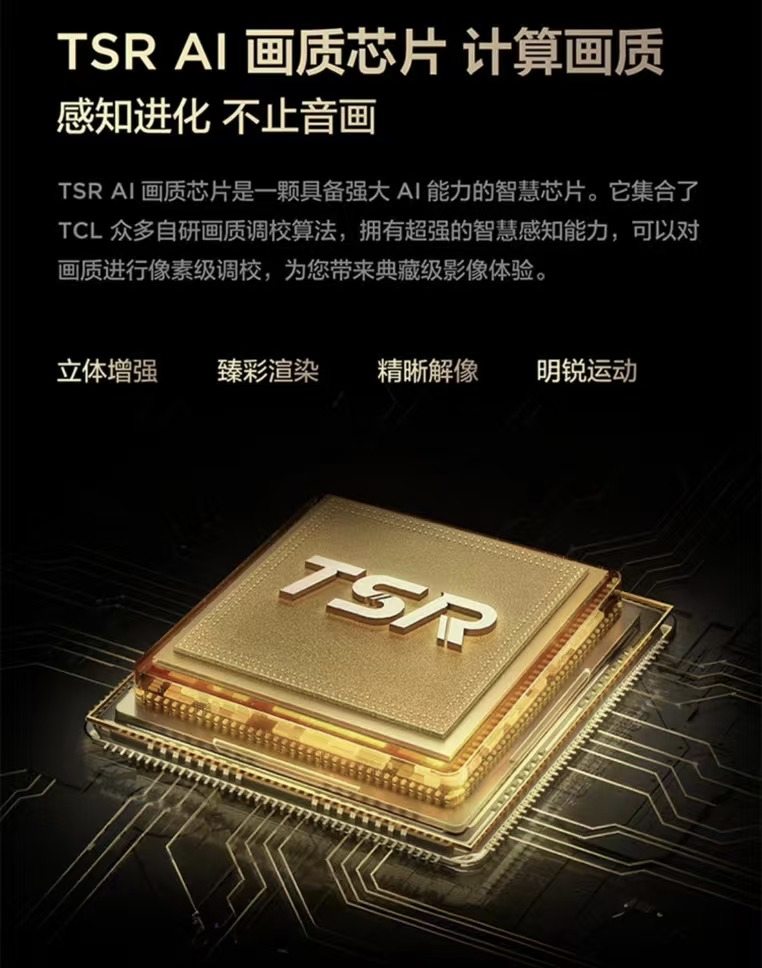 除此之外,TCL在背光控制上也取得全新突破,倒计时3天海报中提到“跃迁级画质”,“万象分区”无疑是TCL今年新品的重要技术标签。该技术于去年年末发布,便成为行业的画质标杆,作为一套系统级的光学解决方案,万象分区控光效果是普通分区的数倍,发挥出了Mini LED的顶级画质优势。此次TCL即将发布的新机最高搭载6000 + 万象分区,到时候会带来怎样惊艳的画质效果,值得期待!此外,TCL旗舰新机还将搭载最新的TSR AI独立画质芯片,集合了TCL众多自研画质调教算法,能对画面和观影环境进行全维识别,对电视内容进行全链路递进式音画质优化,无论是色彩表现、对比度、细节层次还是动态范围,都能得到智能提升,在家就能享受IMAX影院级的视听体验。