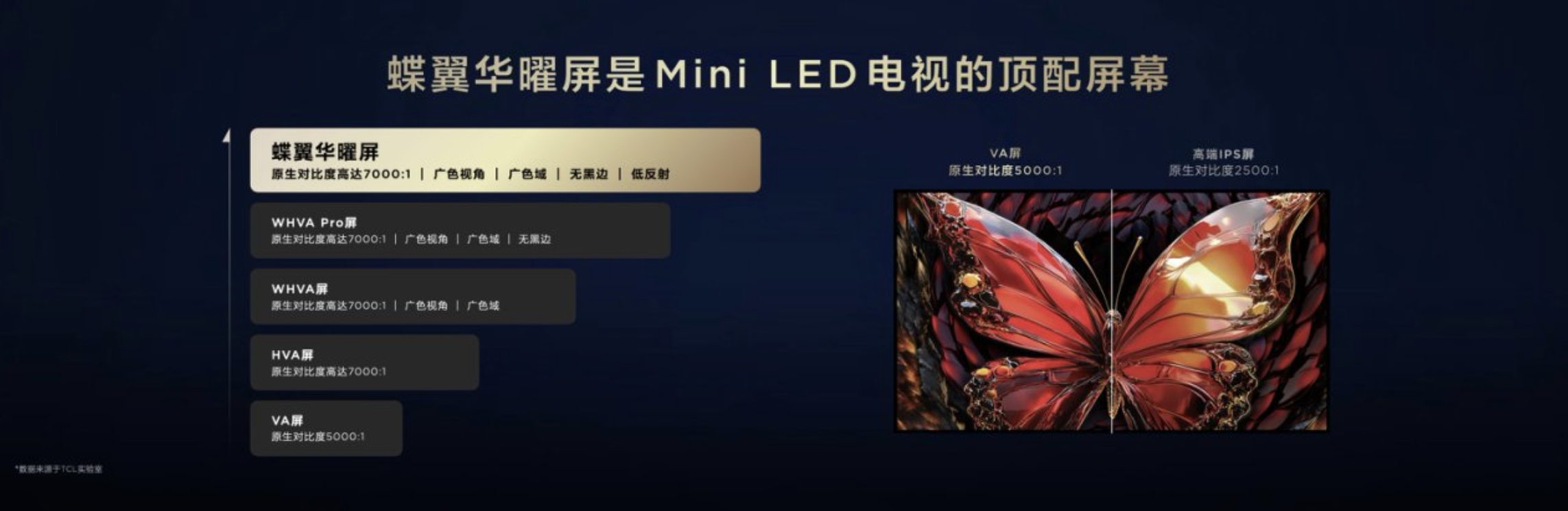咱们在日常生活中使用传统电视是否经常遇到这些问题:对比度低、暗场漏光、反光严重,阳光下画面泛白。部分使用OLED电视的用户稍微会好点,对比度高,但也存在亮度不足、易烧屏、价格高昂等问题。针对这些问题,Q10L系列给出了解决方案,直接使用了Mini LED电视的顶配屏幕、华星自研的「蝶翼华曜屏」,优势相当明显:原生对比度达到7000:1,是普通IPS屏的5倍,暗场黑得纯粹,亮部炸裂如真实日光,夜景细节纤毫毕现;搭配纳米级低反膜,做到0.5%超低反射率,即便客厅朝南、阳光直射,画面依然清晰不反光,告别“镜面电视”尴尬;无噪边+广色域,屏幕黑边近乎消失,98% DCI-P3色域覆盖,侧视色偏降低40%,全家围坐也能享受C位画质。TCL华星是全球顶级屏厂,索尼、三星旗舰机型屏幕多出于它家,而蝶翼华曜屏作为“独家专供”,用网友的话来说就是:“这块屏,让OLED党都沉默了!”