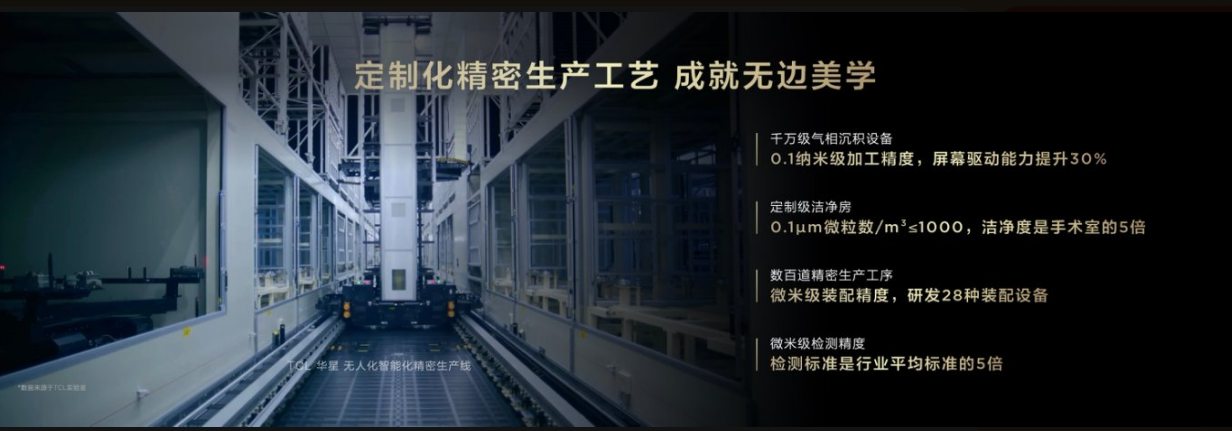 不仅如此,生产的时候也是下足了功夫,定制级洁净房洁净度是手术室的5倍,0.1纳米级加工精度让屏幕驱动能力提升30%。就这么一顿操作下来,真正实现了“无边框、无黑区、无缝隙”,看剧的时候那沉浸感,直接拉满,感觉自己好像也被带入了电影世界!