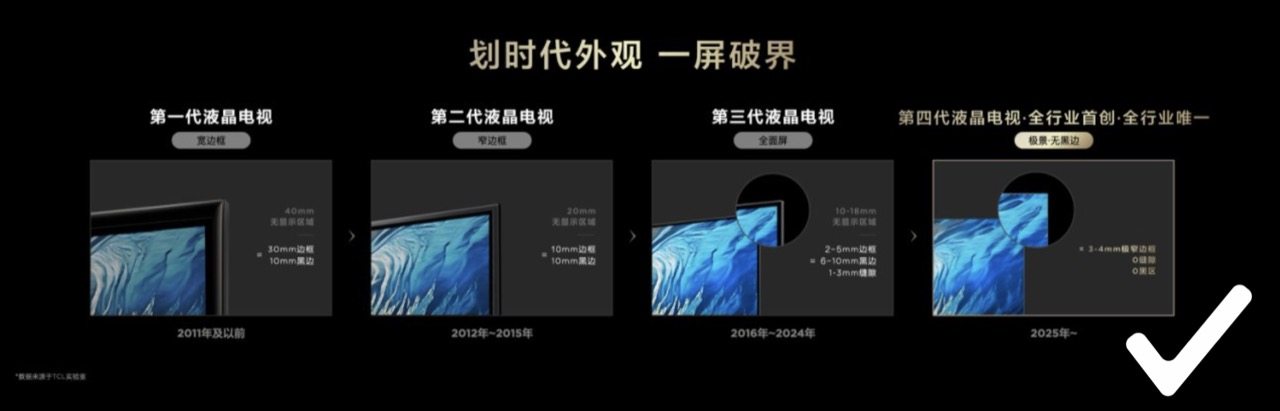 ①边框能停航母:传统电视黑边太宽,挂墙上像块笨重黑板;