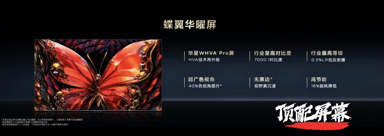 蝶翼华曜屏,这是一块来自全球顶级屏厂华星的屏幕,也是目前为止最适配Mini LED电视的顶配屏幕。它拥有7000:1原生对比度,要知道这可是普通IPS屏的5倍!再加上行业里最高端的,仅有0.5%反射率的纳米级低反膜的加持,看《星际穿越》暗场黑得纯粹,亮部炸裂却不刺眼;看《恶灵骑士》变成烈焰战马场景,火光层次分明,烟雾清晰可见。它还具备超广色域覆盖,能够精准还原自然界中的丰富色彩。无论你是在看一部华丽的好莱坞大片,还是沉浸在纪录片中的自然风光,都能感受到前所未有的视觉震撼。