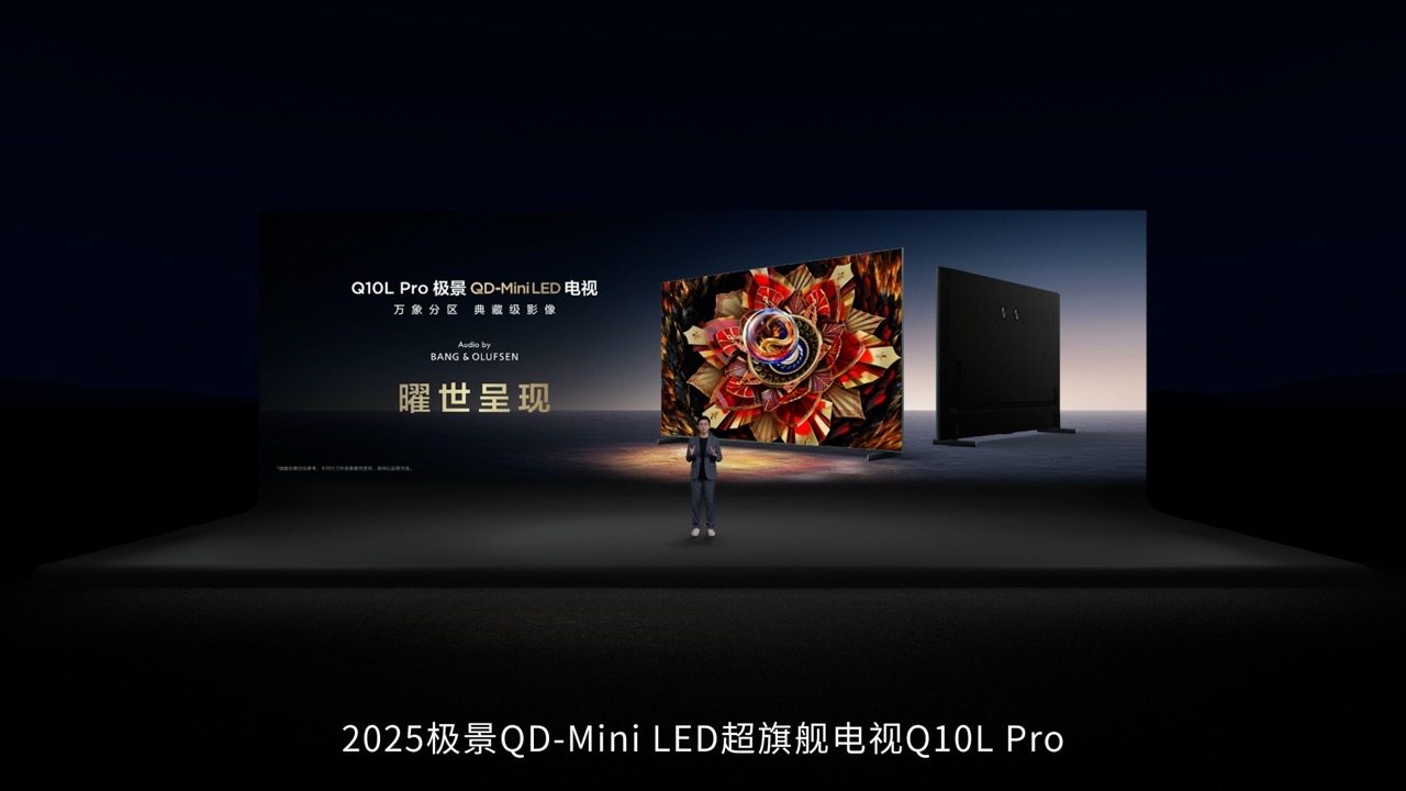 此次发布的Q10L系列,打破了数十年液晶电视形态桎梏,以22项专利技术为支撑,借助全球首创的天工架构,将边框、屏幕及其下方的各层模组完美组合连接,极限缩减屏幕黑边,提升观看视野,达成了“WHVA Pro屏”标准,同时保证结构强度,避免变形,由此推出了首创“极景·无黑边”设计,实现“无边框、无黑边、无缝隙”的视觉感受,正式确立“第四代液晶电视的形态标准”。