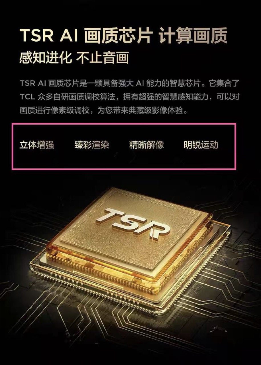 此外,Q10L系列还搭载了全新的TSR AI独立画质芯片,拥有强大的AI算力,这就好比给电视加了个独立显卡。它能通过智能算法实时优化画面细节,精准调校画面的对比度、锐度与色彩饱和度。而且采用云端-终端协同架构,在云端对在线影视资源画质进行逐帧优化调校后,在终端,TSR AI独立画质芯片能再次实现对在线片源的全面优化,实现双重画质增强,让画面越看越清晰、越看越好的效果。