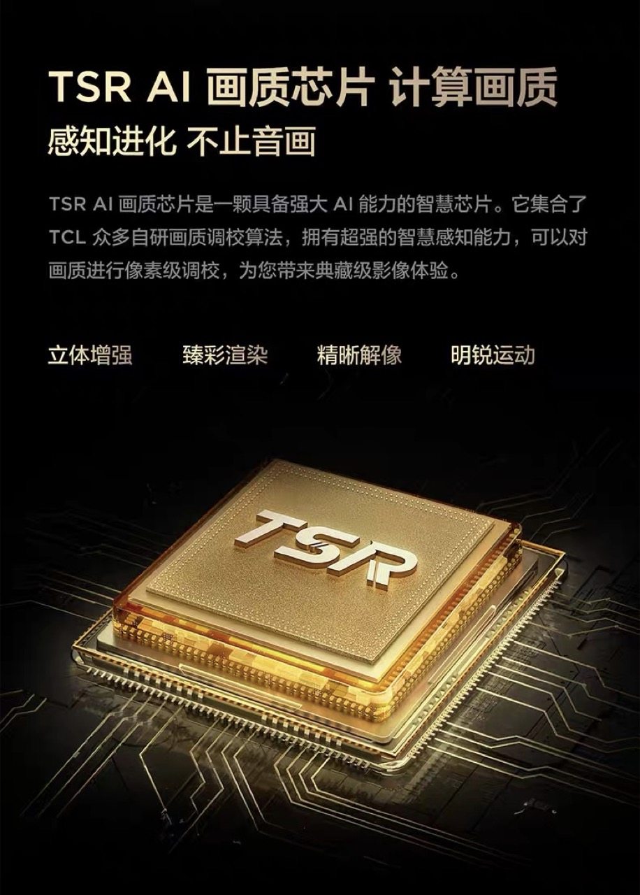 不仅如此,TCL Q10L系列新品还搭载TSR AI独立画质芯片,依托强大的AI画质算力和海量影视资源平台雷鸟,从对比度、色彩、清晰度等维度对图像进行精细调教和增强。同时采用云端-终端协同架构,在云端对在线影视资源画质进行逐帧优化调校后,在终端TSR AI画质芯片能再次实现对在线片源的全面优化,达到画面越看越清晰、越看越好的效果,真正做到了全方位提升观影体验。