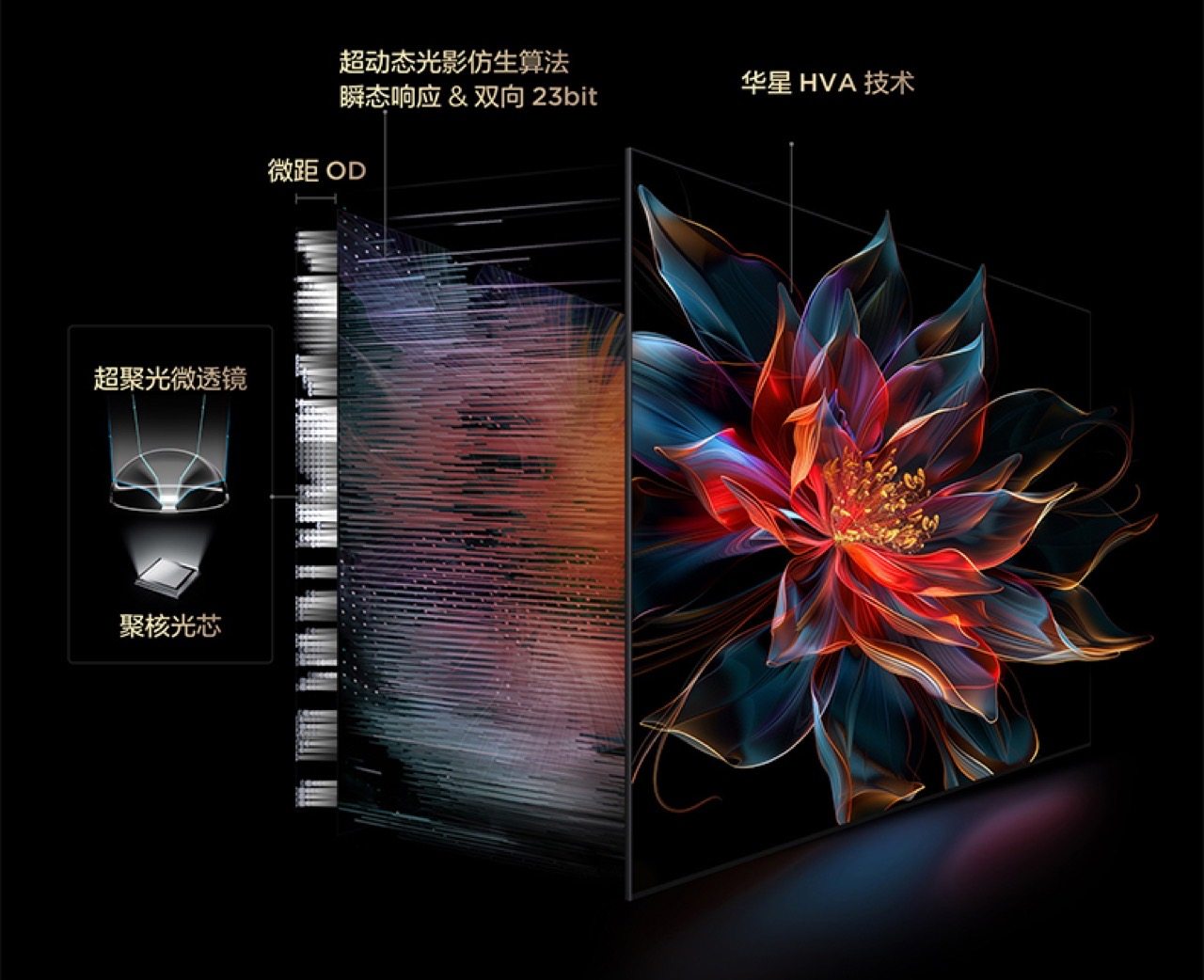 C12K不仅在边框形态上有所突破,更在Mini LED画质上实现了全维提升。在消除画面黑边的同时,C12K采用的蝶翼华曜屏,是华星HVA屏的最高配版,堪称Mini LED电视的顶配屏幕。
