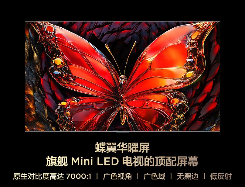 Mini LED电视画质好不好,对比度必须够高,因此,各位记住,买Mini LED二话不说首选对比度更高的软屏!而TCL C12K搭载的则是VA软屏的顶配版——蝶翼华曜屏,不仅采用了无黑边设计,而且原生对比度高达7000:1,是普通IPS屏(1200:1)的5倍!可以轻松呈现星空场景中的银河层次与暗夜细节,彻底告别传统IPS硬屏的“雾面效应”。此外,蝶翼华曜屏还有广色视角、广色域的属性,一大家子围看电视,坐在侧边上也不怕看不清楚画面。再配合行业顶级的0.5%LR低反膜,白天强光和晚上灯光都不会影响观影体验,反光那是不存在的。而海信的这款U8N采用的黑曜屏虽在低反膜技术上有所突破,但受限于IPS硬屏较低的原生对比度,在影片的一些暗场景时可能仍存在暗部发灰现象,对于追求影院级高清效果的用户来说,略吃亏。
