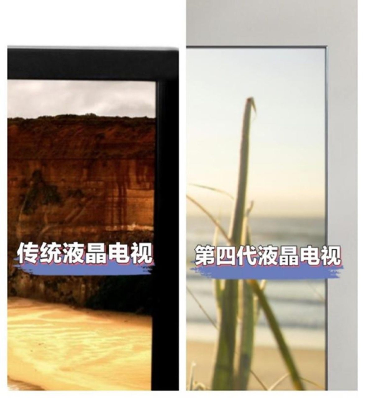 对比前三代液晶电视,第一代液晶电视可视面积接近87%,第二代液晶电视可视面积接近93%,第三代液晶电视可视面积接近95%-97%,而第四代液晶电视可视面积接近100%,首次实现了“无黑边、无边框”的视觉体验,这大大增强了视觉延伸感和美感,给人更加沉浸式的观影体验。