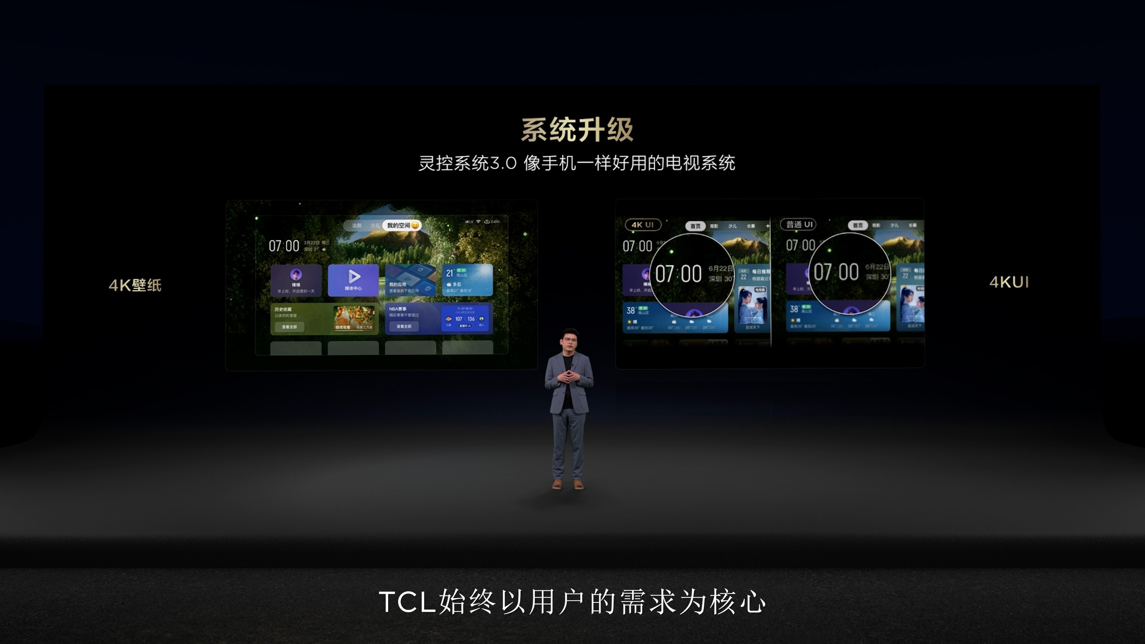 除了画质、音效方面的突破,TCL还在智能操控、画质芯片和外观上实现了跨越式升级。灵控系统3.0的加入,让电视操作更加智能、个性化,无开机广告、场景深度定制等功能进一步提升用户体验。TSR AI画质芯片则为画质提供双重增强,实现了画质的最优解。外观上,得益于万象分区微距OD的设计,整机厚度远低于普通电视,“极致薄”的设计不仅好看,更提升了产品的整体质感。