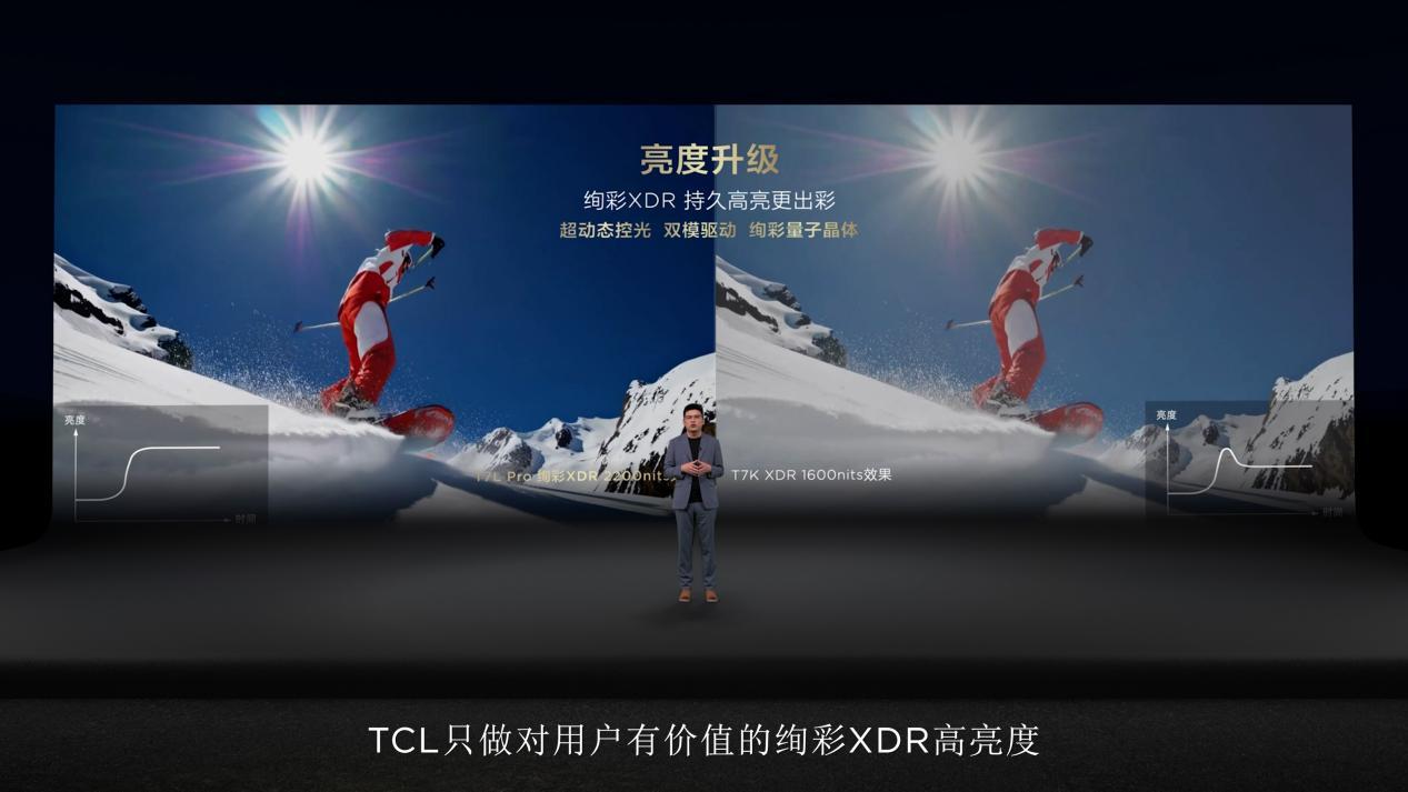 而亮度作为另外一项重要指标,TCL新品也从XDR升级为了绚彩XDR,以Q9L Pro为例,从之前的XDR 2400nits,升级为了绚彩XDR4500nits,不仅峰值亮度数提升了,并且在绚彩量子晶体以及超动态控光等技术的加持下,亮度呈现不仅更出彩,而且更持久。