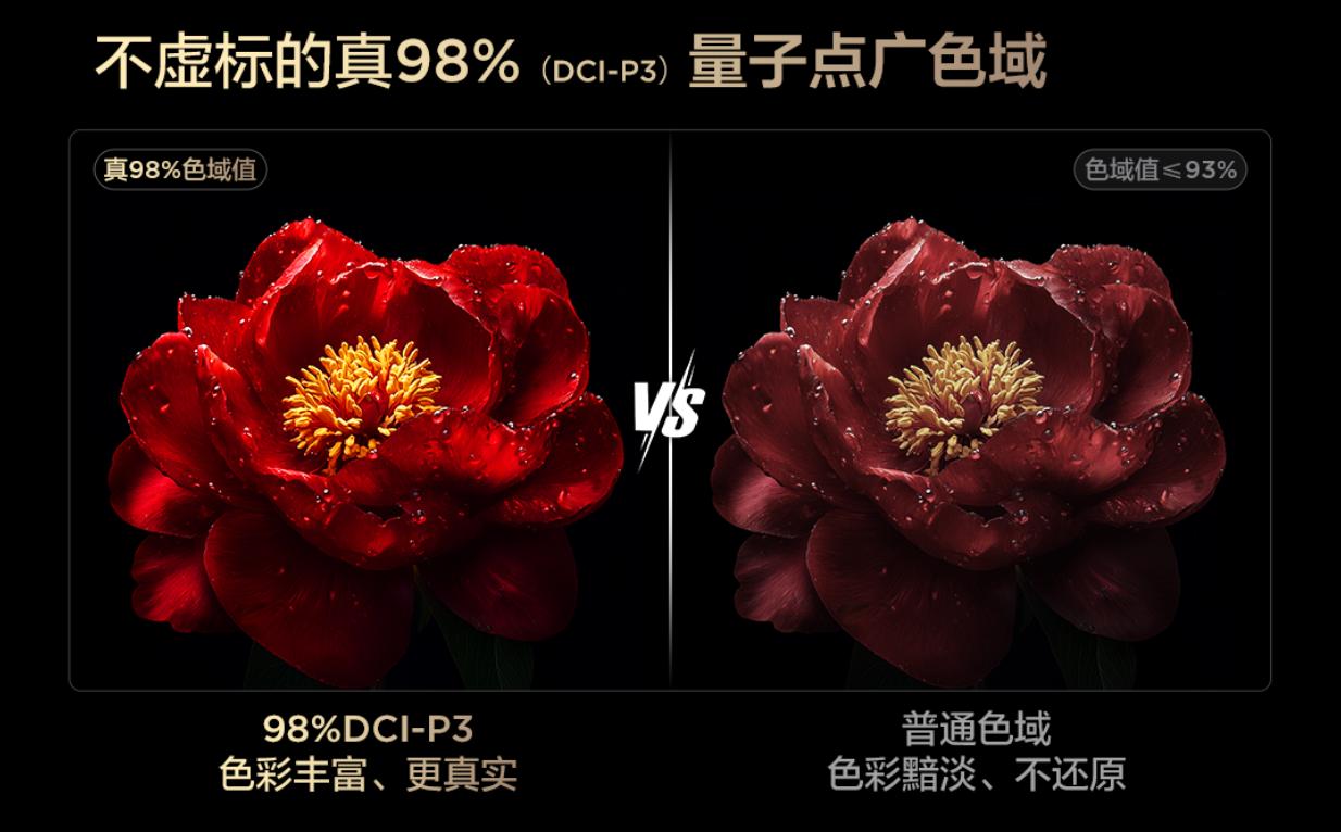 好的对比度可以让画质更加清晰,而加上好的色彩,才能实现真正极致的观影体验。这不,TCL在这次的几款新品上也都升级采用了量子点Pro 2025,作为国内第一家推出量子点电视的品牌,在这块的实力毋庸置疑,由于在材料上把原有的四元量子晶体升级成绚彩量子晶体,使得其结构稳定性更高,在达成真·98%DCI-P3超高色域的同时,使用寿命也提升到了10万小时不褪色,加上全新的人因色彩优化技术,色彩不仅真实,而且更符合人眼喜好。