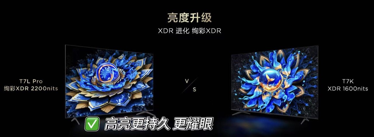 懂行的都知道,对于Mini LED技术来说,屏幕对比度那是相当重要。要是没有一块高对比度的屏,Mini LED技术就没有意义。TCL听到网友们对屏幕升级的强烈呼声,这次诚意十足,直接把T7L Pro系列和Q9L Pro系列的广角超显屏,升级成了去年超旗舰级产品Q10K Pro才搭载的蝶翼星曜屏。这款屏幕对比度高达7000:1,是普通IPS屏的5倍。它能够呈现出更深邃的暗场和更耀眼的亮场,画面效果大幅提升。