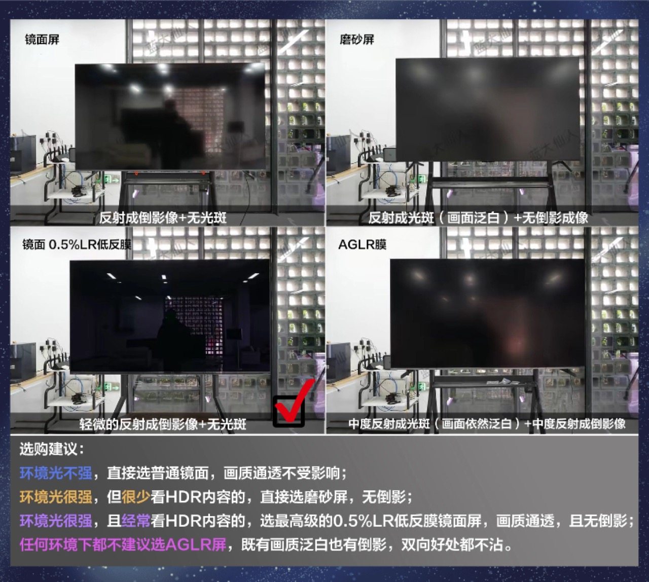 此外,抗反光同样作为一款好屏的核心素养,同样是各大厂商一直在想方设法突破的难点。纵观市面上主要的几种屏幕,镜面屏反光、磨砂屏泛白,包括AGLR屏似乎都无法很好地兼顾画面通透和抗反这两点,而蝶翼星曜屏则通过一层0.5%LR低反膜以及89°规则排布的液晶分子实现了内外双低反,即便是面对白天的强光也都无惧反光,画面始终清晰可见,就连暗场细节纤毫毕现,可以说蝶翼星曜屏完美地实现了“抗反光”与“高清晰”的平衡。