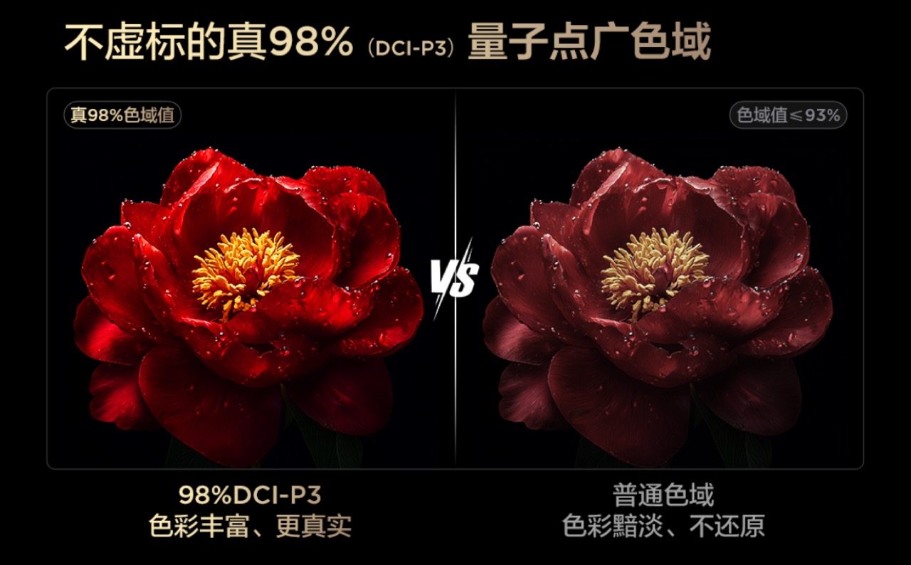 要还原真实“视”界,好的色彩也必不可少。这次T7L Pro系列以及Q9L Pro系列还将去年的量子点Pro 2024升级成了量子点Pro 2025,全新绚彩量子晶体技术让DCI-P3色域保持不虚标的真·98%覆盖,大幅提高电视画面的色域值,并使得画面颜色更接近现实物,同时通过人因色彩优化技术,呈现更真实以及更符合人眼喜好的色彩,不仅能让色彩“好看”,更能“看得好”、“看得舒服”。