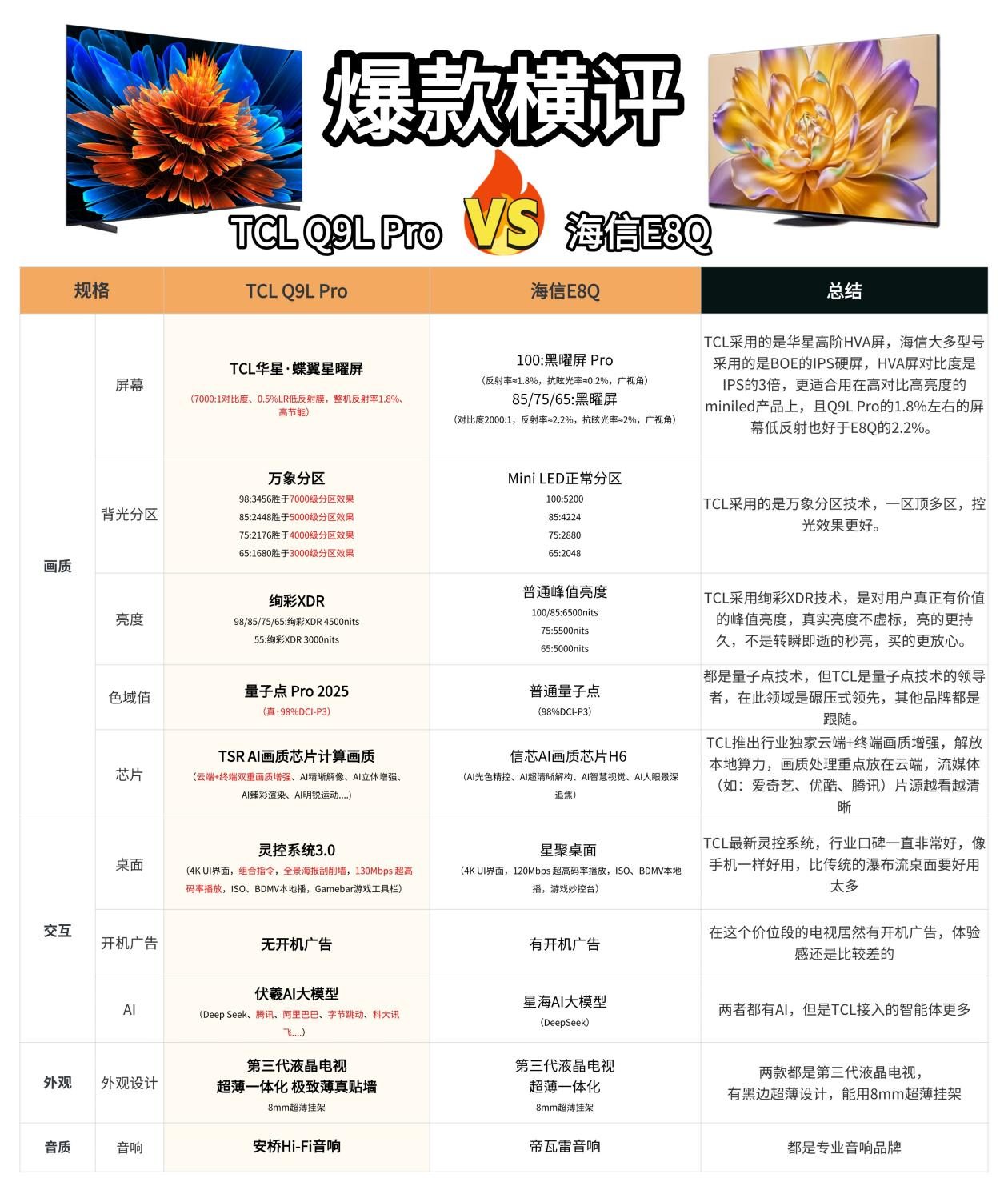 就拿 T7L Pro 来说,65 吋的首发价4799元,叠加国补后,价格直接降至3839元。还有 98 吋的T7L Pro,相比去年的 T7K 直接降价 2000 元,仅需1299 元,而在享受国补之后,价格更是低至 10999 元,谁能不心动?再看 Q9L 系列,与同价位其他品牌中热度较高的产品相比,Q9L 系列在画质、操控系统等方面优势都十分明显。