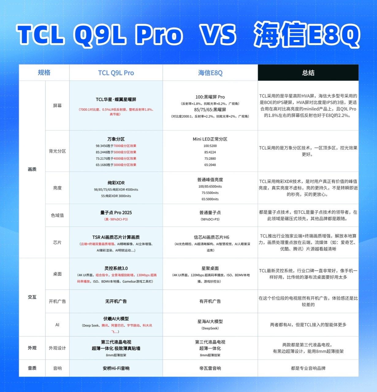 本以为去年发布的T7K和Q9K凭实力和真香价格已是质价比神机的巅峰之作,没想到近期发布的T7L&Q9L系列QD-Mini LED电视竟又放大招!在配置上,不仅拥有一区顶多区的“万象分区”技术,更搭载了7000:1超高原生对比度的“蝶翼星曜屏”,以及N多前沿技术和配置,如量子点Pro 2025、灵控系统3.0等,在全方位升级的同时居然还加量不加价!堪称业界良心!这波高阶技术下放,友商看了都得连夜改方案!