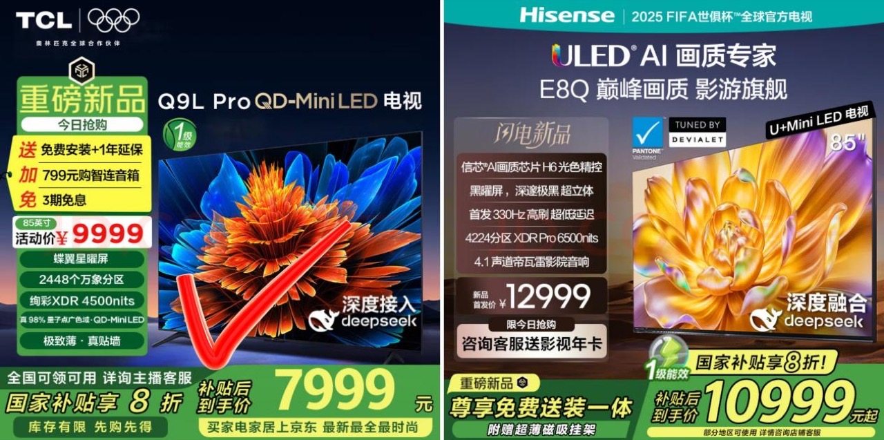 在国补政策的加持下,集价格、画质、使用寿命等优势的Mini LED电视在刚过去的第一季度较没有国补加持的去年同期实现了爆发式的增长,并且据洛图科技预测,今年Mini LED的销量更是有望突破900万台。显然,买Mini LED电视已经成为“大流”,TCL与海信两大巨头的厮杀已进入白热化阶段,在今年以来先后推出了一系列创新产品。面对全网热议的“TCL Q9L Pro vs 海信E8Q”世纪对决,到底谁更值得买?横评结果令人震惊!