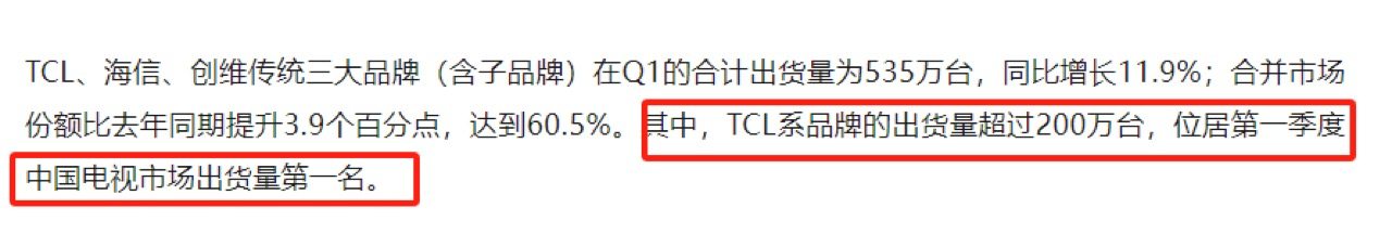 再度登顶行业第一!TCL电视第一季度出货量碾压式领跑