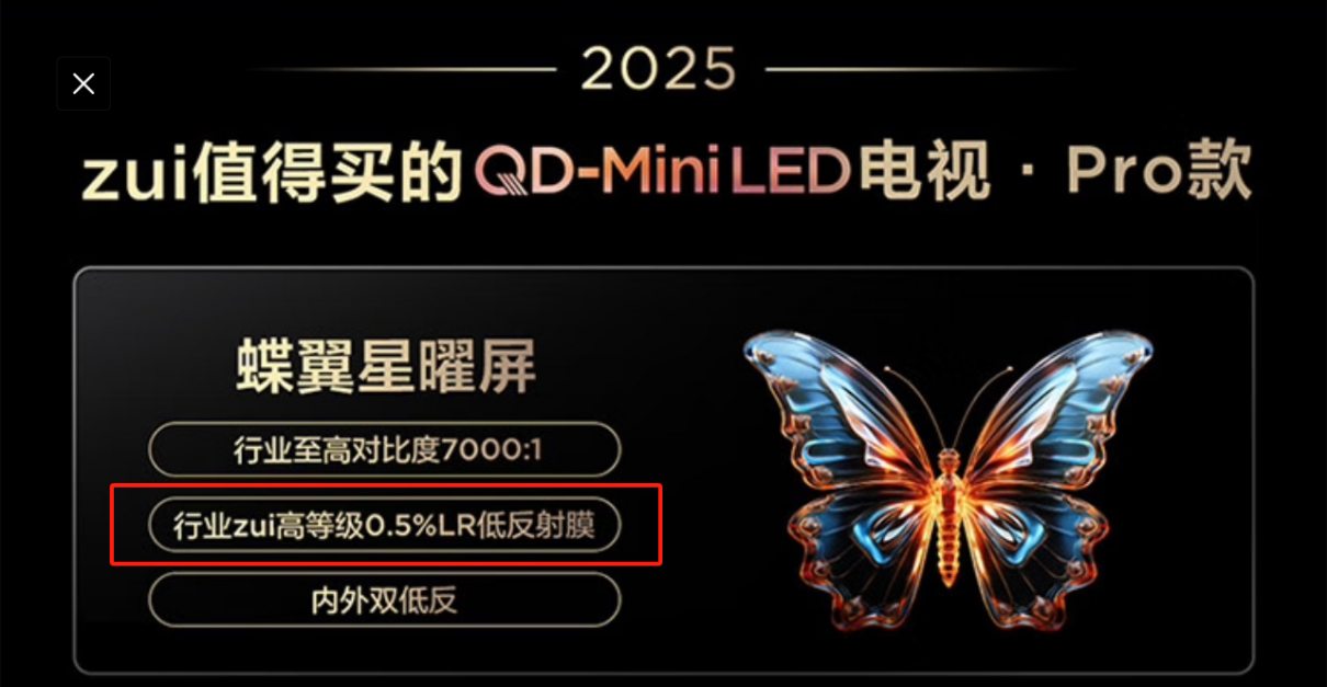 对比度作为衡量画质好坏的核心指标,Mini LED电视的出现实际上就是为了解决传统液晶电视对比度不高画质差的问题,因此,屏幕的对比度才是好画质的关键!其实,抗反光能力仅仅是影响画质效果的参数之一。对于Mini LED电视来说,其核心竞争力其实是对比度的提升:屏幕对比度越高,画面亮暗细节更丰富,画质更好。因此,脱离了对比度,而只关注抗反率,属于舍本逐末,对于提升Mini LED画质来说毫无意义。