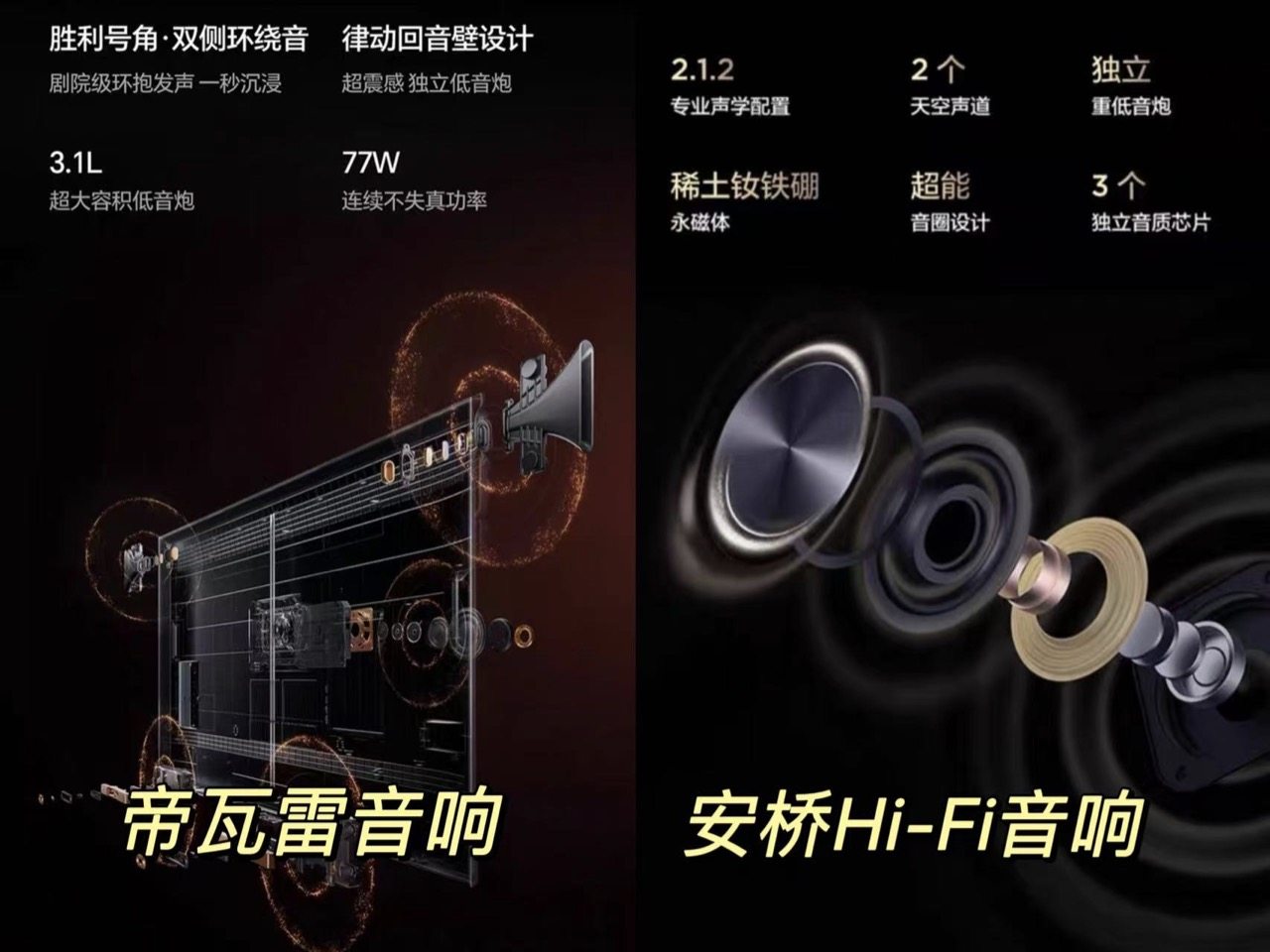 至于音质部分,海信E5Q Pro配备了来自法国巴黎的国际顶级品牌帝瓦雷影院音响系统,能带来出色的试听体验。另一边,TCL T7L Pro则选用了被誉为“家庭影音标准定义者”的安桥Hi-Fi音响,能够营造出360度立体声场,让你在观看电视时仿佛身临其境。两款电视在音质方面都有着出色的表现,难分高下。