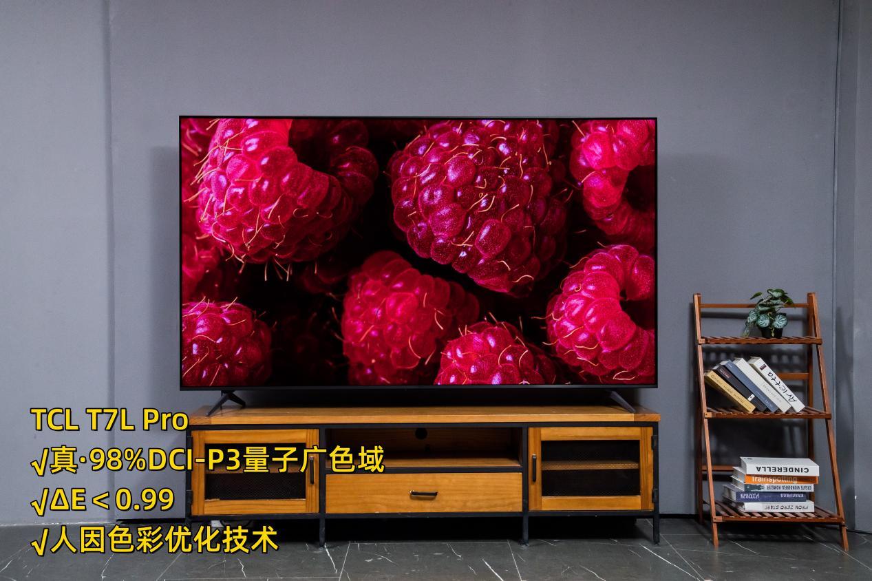 颜色作为画面的灵魂,一旦色彩失真观影体验就会大打折扣。量子点作为目前最好的发光材料,是目前各个大厂的首选。TCL T7L Pro这边采用的是量子点Pro 2025,在绚彩量子晶体的作用下,可以实现不虚标的真·98%DCI-P3量子广色域,能够还原更多自然界的色彩,色准小于0.99,已经是专业级别。并且还新增了人因色彩优化技术,简单来说就是可以根据人眼的喜好进行更精准的色彩调校,这样做的好处就是可以让色彩做到更加真实,尤其是针对肤色这类容易失真的画面。