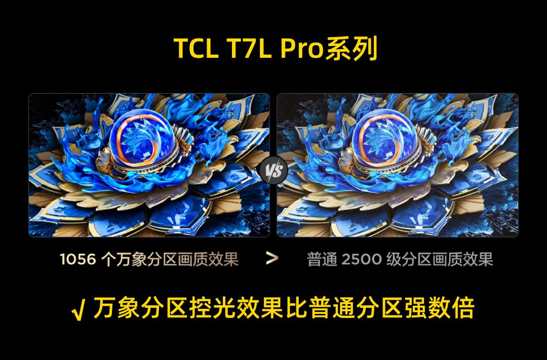 综上,对于追求高画质的影音爱好者,个人还是更推荐TCL T7L Pro,不仅搭载了拥有7000:1原生对比度和超强抗反方案的蝶翼星曜屏,色彩上还有量子点Pro 2025技术做托底。此外,控光效果上,T7L Pro得益于“一区顶多区”的万象分区的加持,控光实力是普通分区数倍,比方说98吋T7L Pro的1056个万象分区,可以呈现出超越2500级普通分区电视的画质,没有光晕问题,画面更加有层次感。