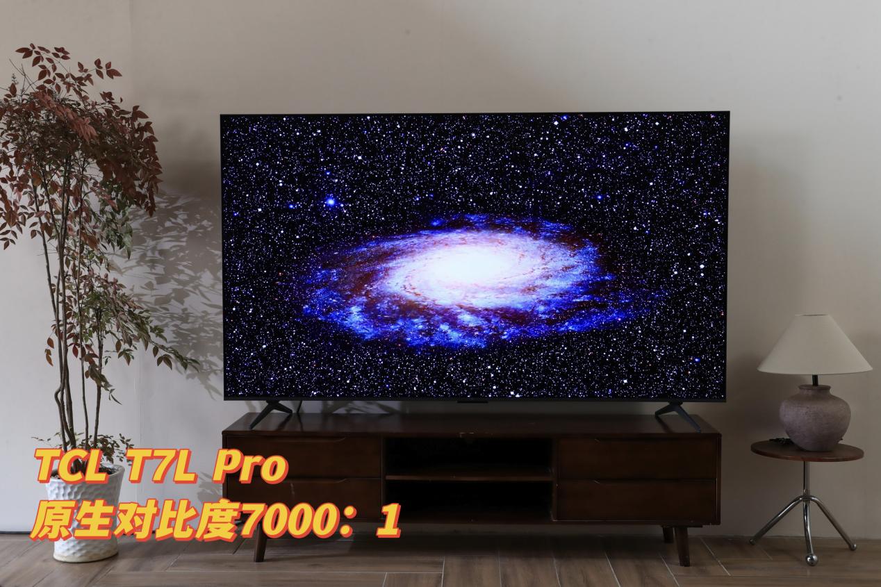 回过头来,TCL家的T7L Pro所搭载的蝶翼星曜屏就属于华星HVA旗舰屏,原生对比度高达7000:1,从实测画面可以看到,即便是面对复杂的星空暗场景,每颗星星都依旧清晰可见,可以说,TCL在对比度这块自带“buff”。