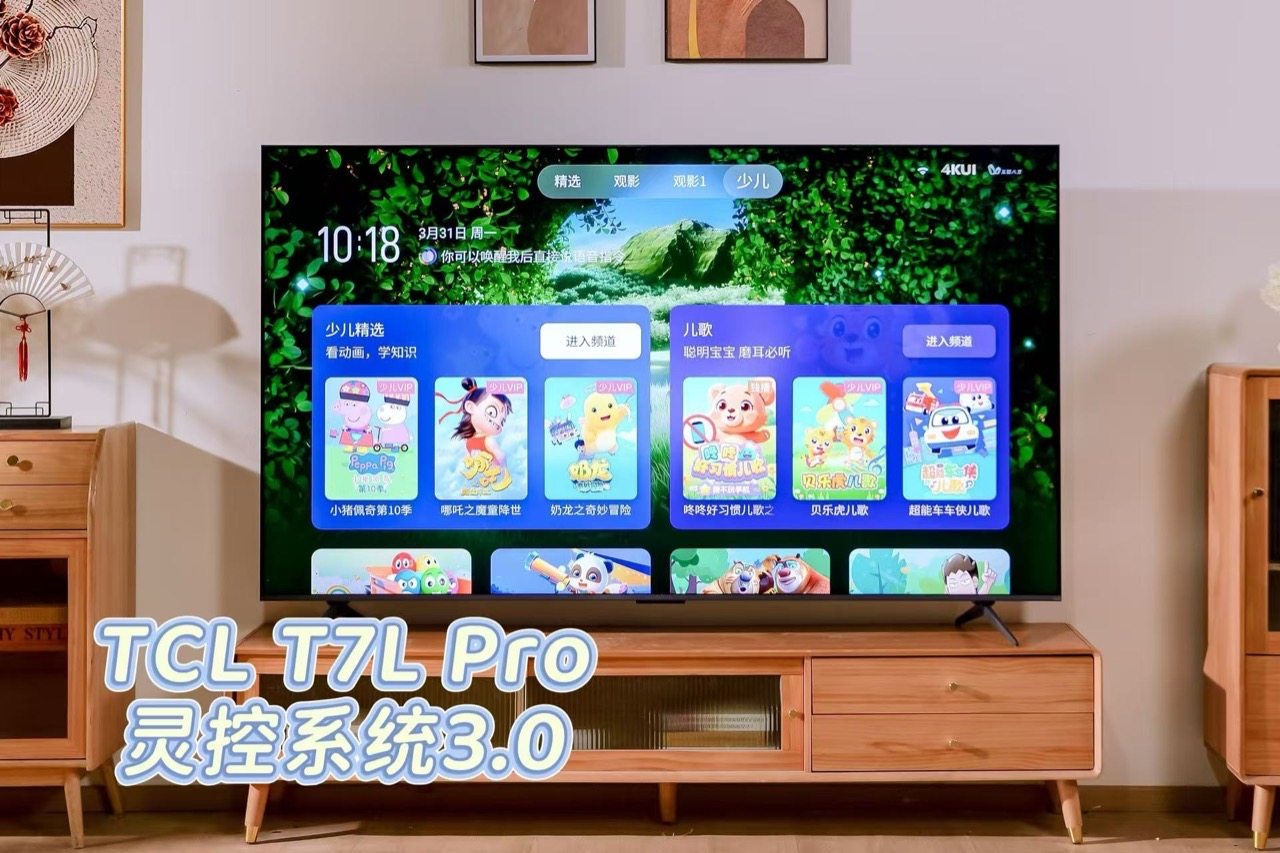 最后看操作体验,TCL T7L Pro 搭载了灵控系统 3.0,无开机广告,用户开机即可直达想看的内容,支持 4K UI,界面简洁直观,操作流畅。