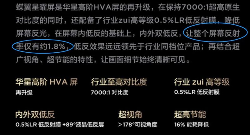 通过在屏幕上增加一层0.5%LR低反膜,结合内部89°规则排布的液晶分子,实现内外双低反,整机1.8%超低反射率,有效解决反光问题的同时,保留了镜面屏画面通透的特性,可谓是“一箭双雕”。