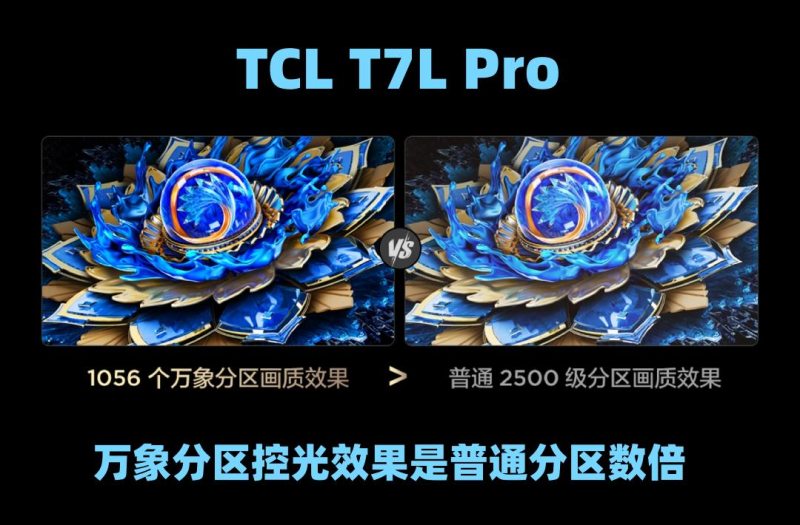 当然,屏幕是画质好坏的关键,但是想要发挥屏幕的最佳效果,这Mini LED的背光技术也得够硬才能托底,因此就白瞎了一块好屏。就以TCL T7L Pro为例,不仅达到了同级领先的1056个分区,而且还用上了“一区顶多区”的万象分区。