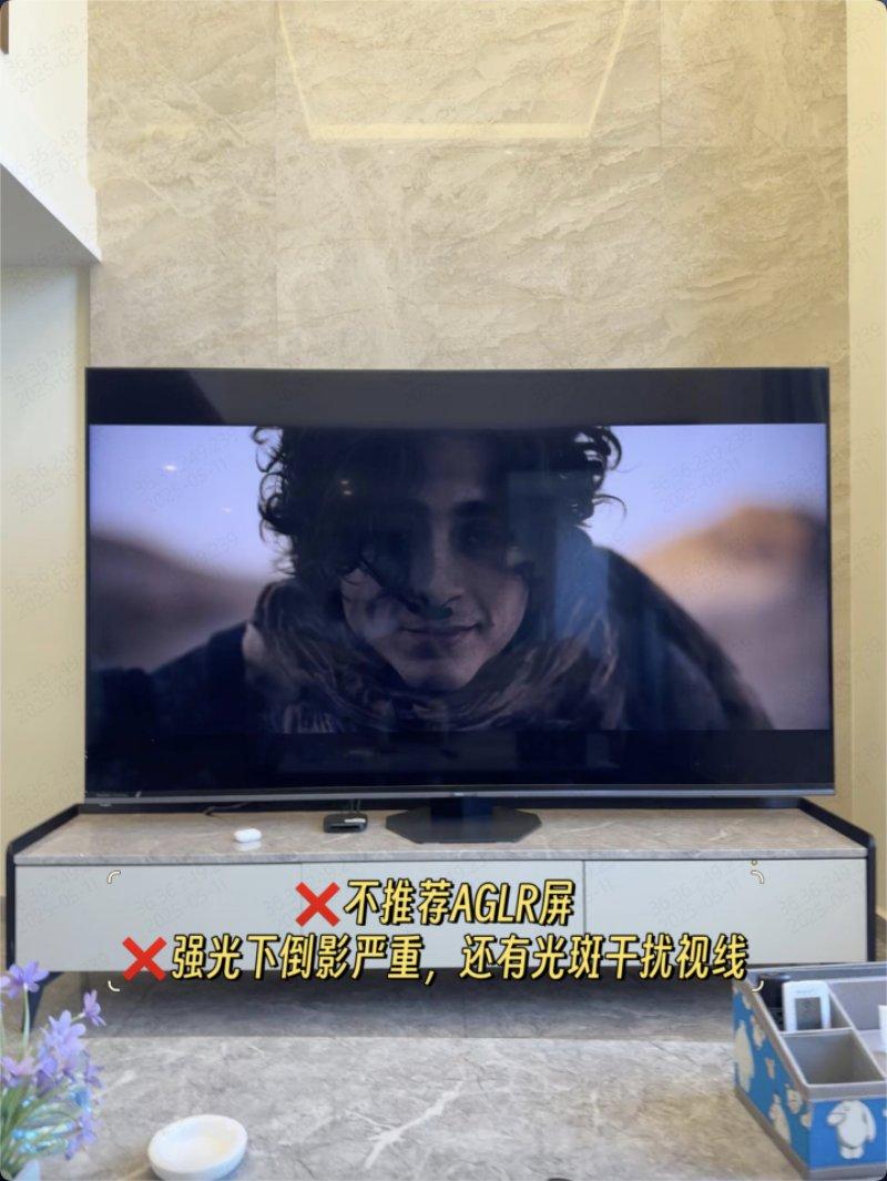 说白了,这其实就是屏幕素质不到位,抗反光能力差。简单跟大家科普下,现在市面上常见的电视屏大致可以分为磨砂屏和镜面屏。磨砂屏的好处是抗反光能力强,但画面看起来会有点糊;镜面屏通透感好,可一旦环境光复杂,就容易反光刺眼。还有一些厂商会用AGLR屏,也就是把磨砂(AG)和低反(LR)结合起来,理论上是为了兼顾抗反和清晰度,但实际体验下来就比较鸡肋,两边都不讨好。