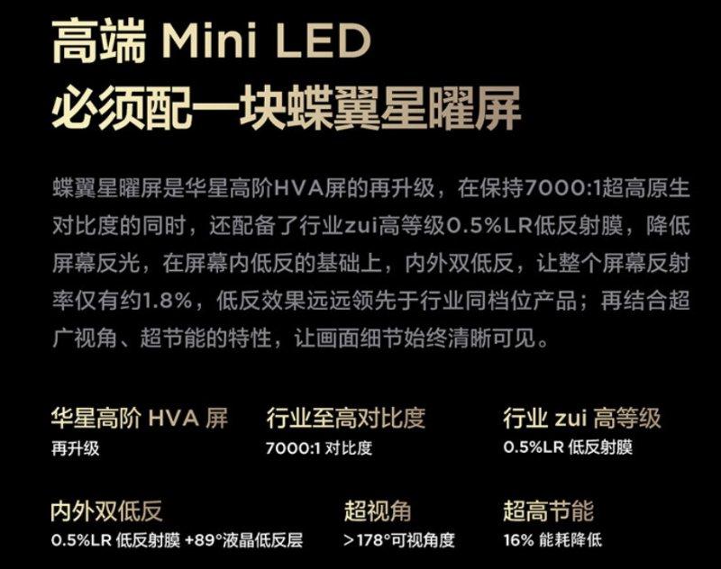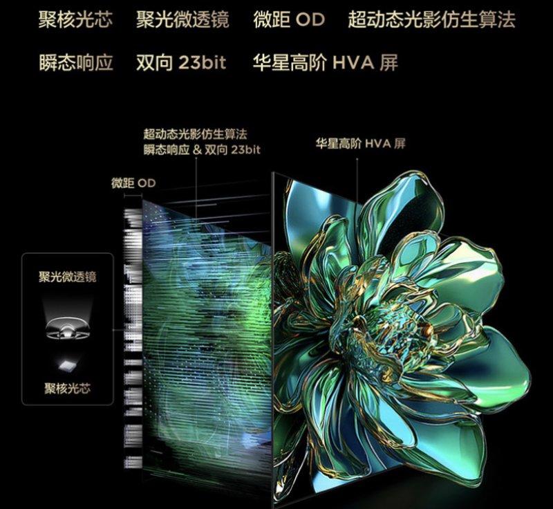 T6L Pro用的这块蝶翼星曜屏,是2024年的高端旗舰Q10K Pro同款,算是Mini LED电视里头顶配的存在了。它不是简单加了一层膜,而是外层用了0.5%的行业最高等级LR低反膜,内层还有液晶低反层,液晶分子还做了规则排布,内外双层一起上,整机反射率能做到1.8%。这也就意味着,不管是白天阳光直射,还是晚上开灯追剧,都能有效减少反光,画面清晰度能一直在线。