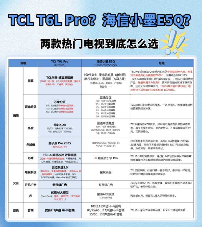 618买电视必看抗反光!TCL T6L Pro和海信E5Q谁更值得买?
