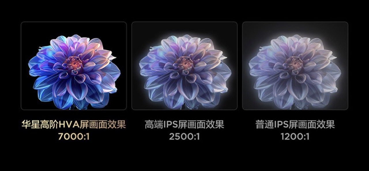 可以看到,TCL T6L Pro这边全尺寸搭载的是蝶翼星曜屏正是采用了以上这种方案,实际上也是今年推出的旗舰机型Q10L系列的同款华星高阶HVA屏,原生对比度高达7000:1,是普通IPS屏的5倍不止,高对比度不仅带来了亮暗画面更好的层次感,并且也减少了漏光和光晕的问题。