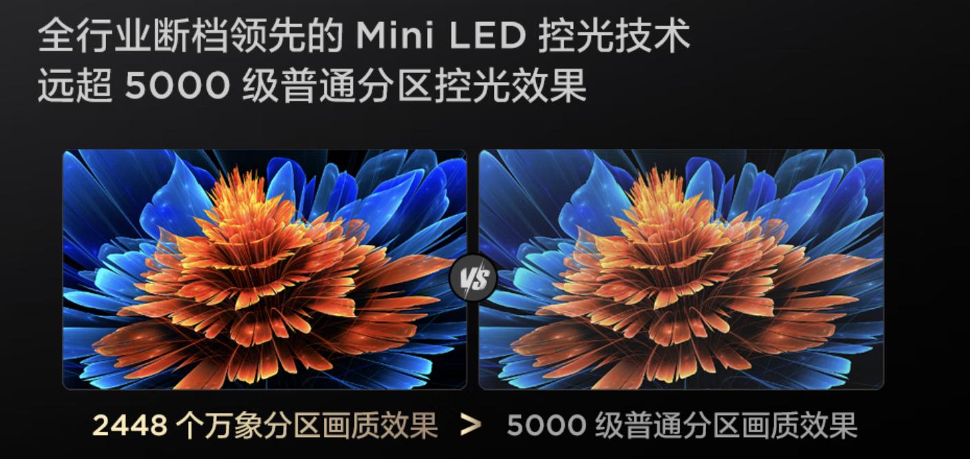 除了超高对比度和超强抗反光能力之外,Q9L Pro的这块屏幕还有许多黑科技,首先就是“一区顶多区”的万象分区控光技术,拿我家这台85吋版本为例,它有着2448个控光分区,但在背光到成像显示的全链路7大环节的技术突破下,它的控光效果远超5000级普通分区。